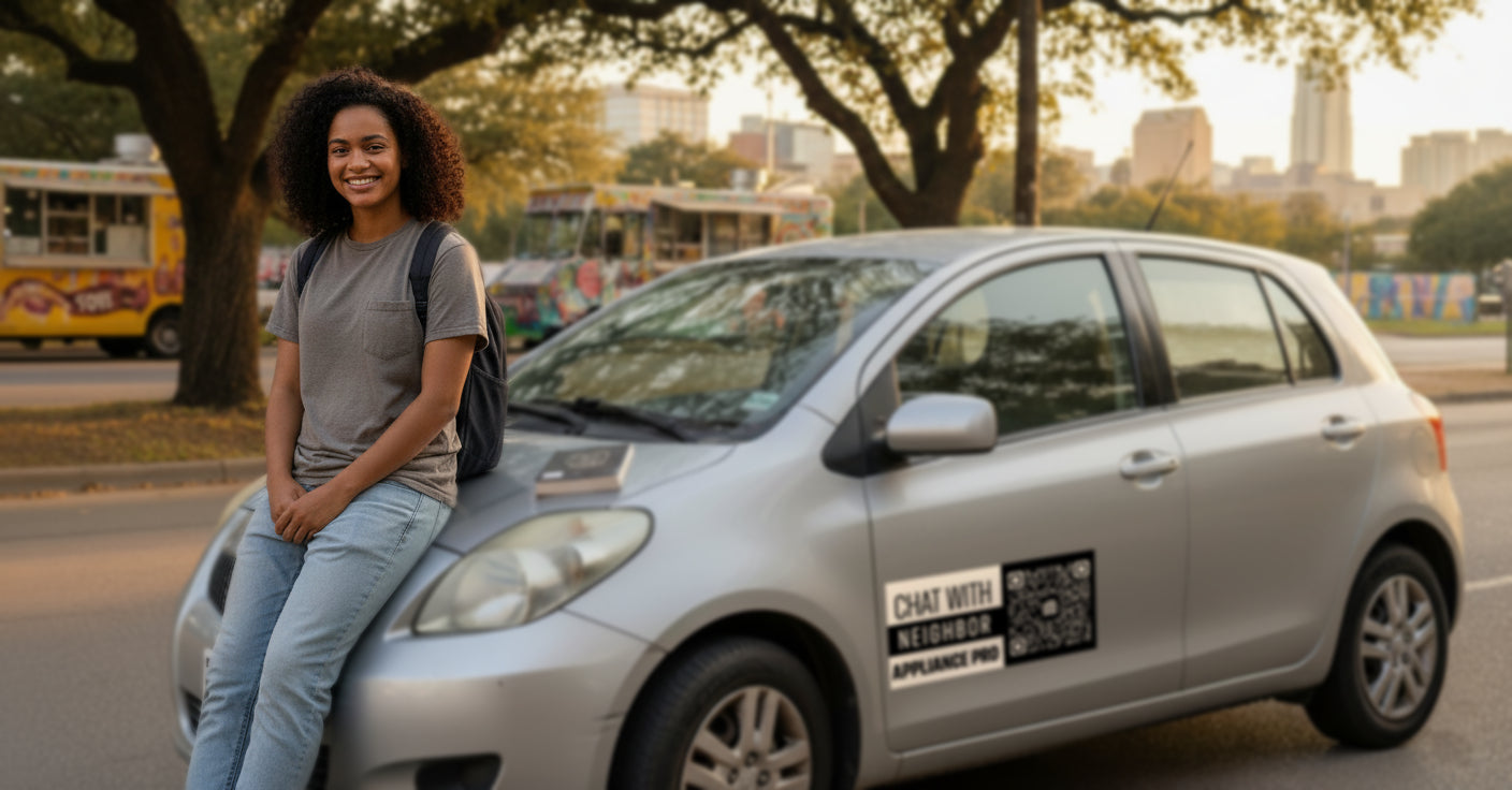 What surprised me is how natural it feels. Customers see the decal, scan it, and they get help. I just keep driving, like I always do. Honestly, it feels like my car finally pays me back for all those miles I put on it.”